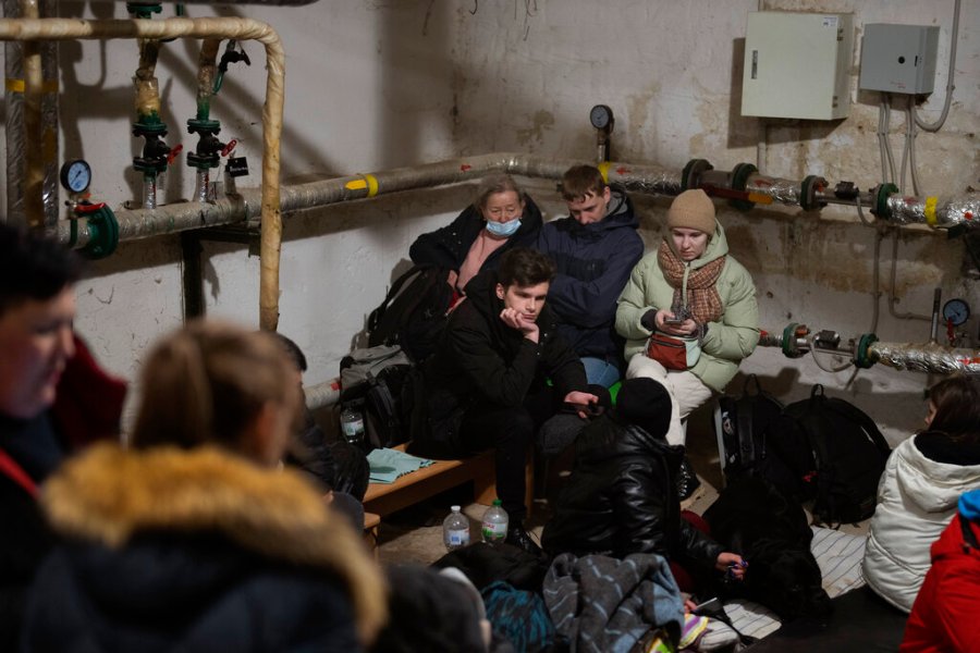 Ukrainians were urged to shelter in place and not to panic. Thousands of people went deep underground, jamming Kyiv’s subway stations, for protection.