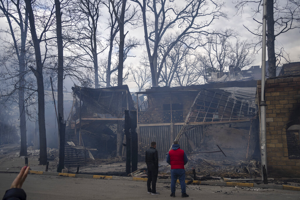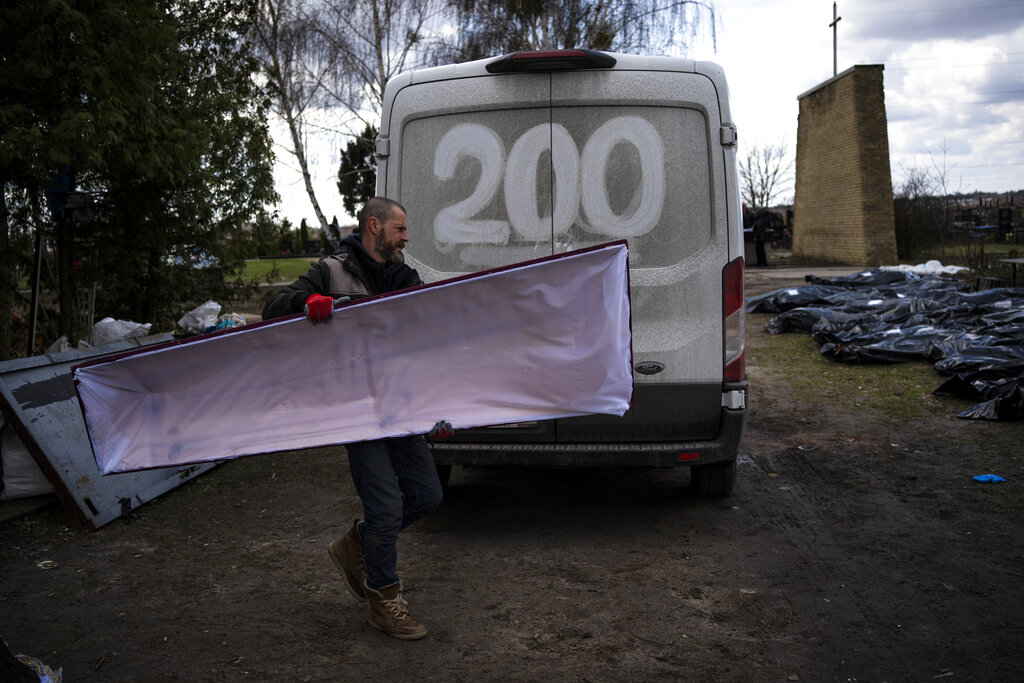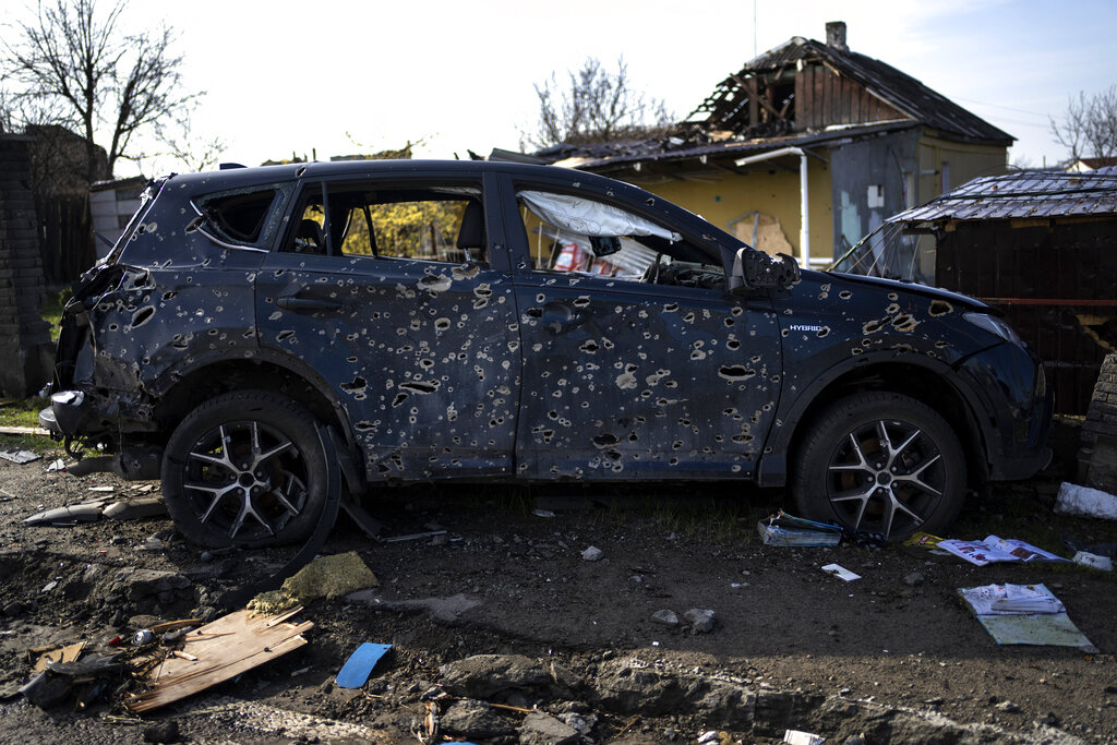 In another report of atrocities, in the village of Buzova outside the capital, Kyiv, charred vehicles and buildings marked an area where local official Taras Didych told Ukrainian media Sunday that bodies showing “evidence of execution” were found after Russian forces withdrew from the region. It was unclear how many bodies were discovered.