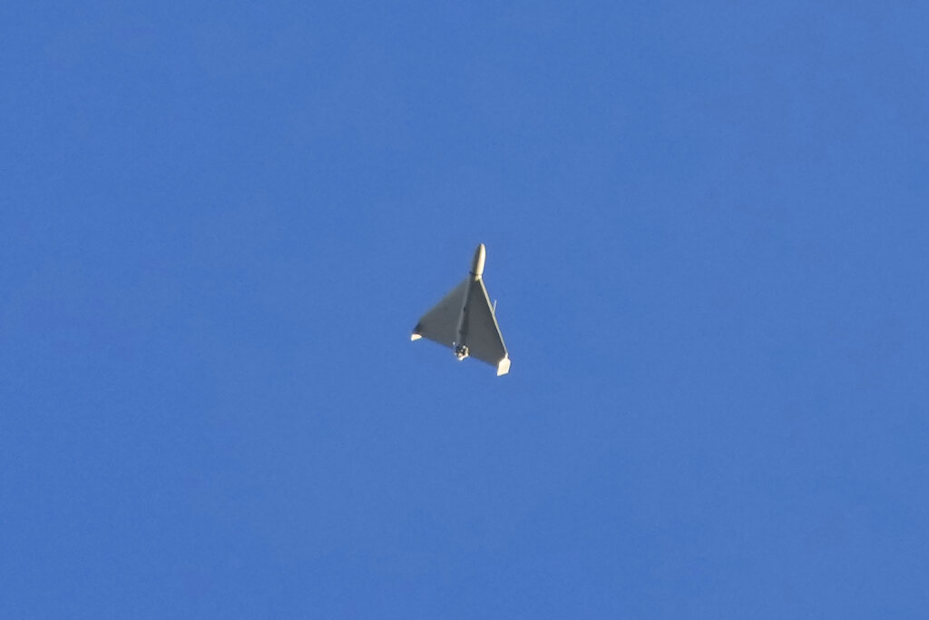 An Associated Press photographer caught one of the drones on camera, its triangle-shaped wing and pointed warhead clearly visible against the blue sky.