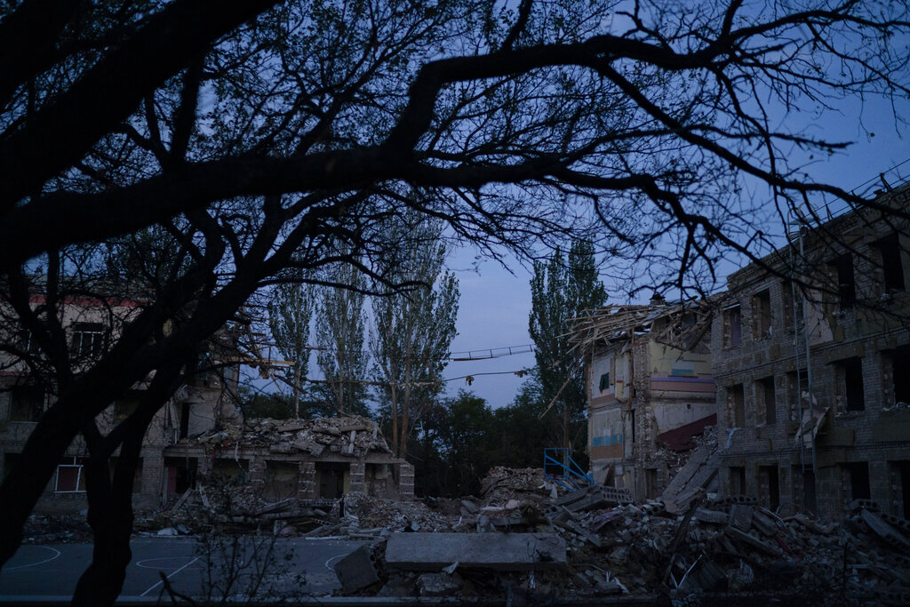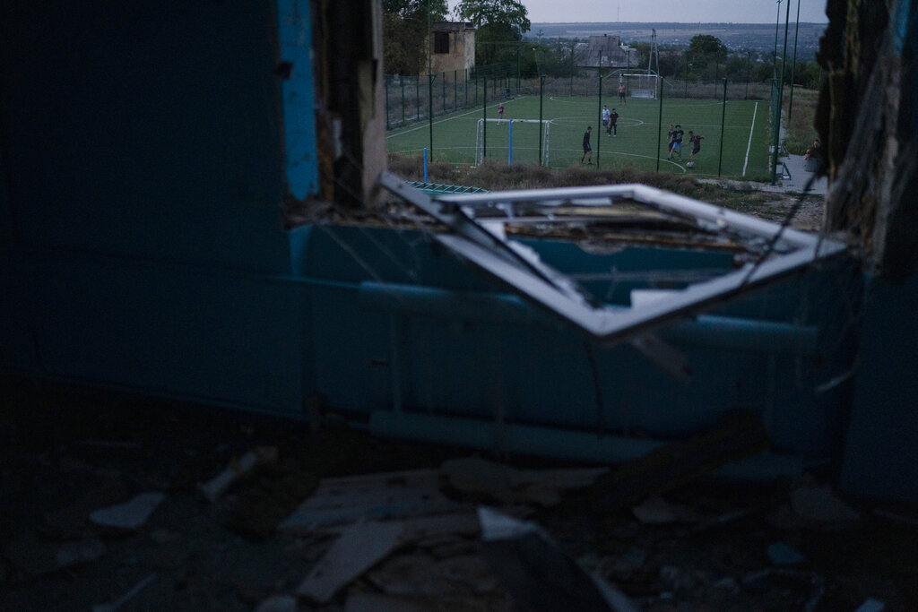 Their school, the biggest in the area with 407 students from Mykhailo-Kotsyubynske and nearby villages, is still badly damaged. Debris fills the second floor, and the roof and heating system still need to be repaired — money the school doesn’t have.