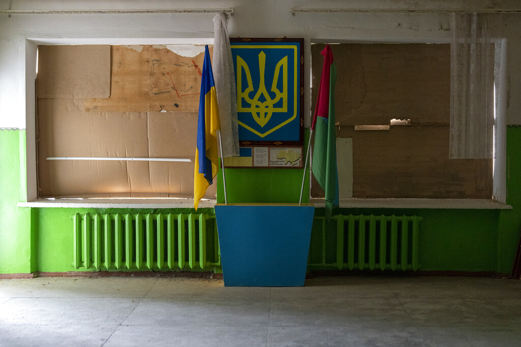 In one city school, the first-grade classroom was all ready: tables, chairs, a clean blackboard, the alphabet and numbers hanging on the wall, and Ukrainian flags ready to be distributed to the kids. The only thing missing was the students.