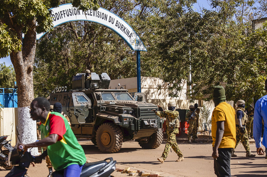 OUAGADOUGOU, Burkina Faso (AP) — More than a dozen mutinous soldiers declared Monday on state television that a military junta now controls Burkina Faso after they detained the democratically elected president following a day of gunbattles in the capital.