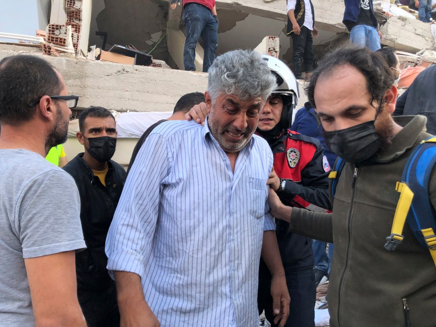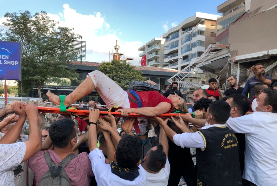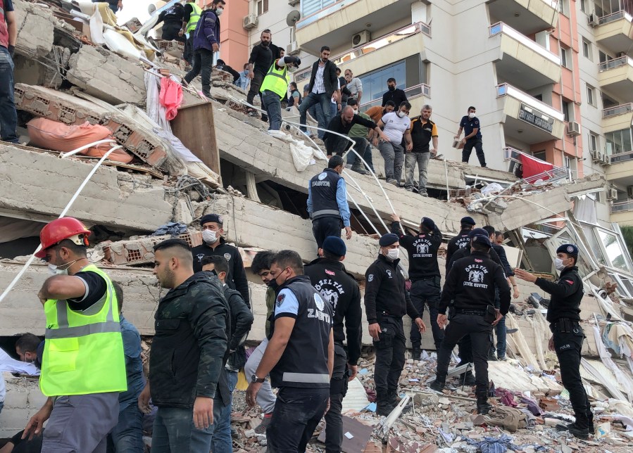 Izmir Gov. Yavuz Selim Kosger said at least 70 people had been rescued from the wreckage. He said four buildings were destroyed and more than 10 collapsed, while others also were damaged.