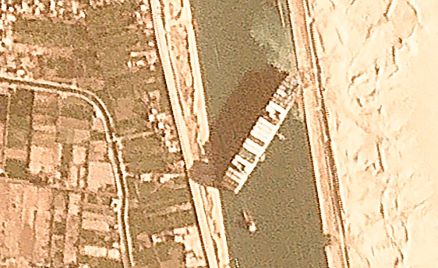 So far, dredgers have tried to clear silt around the massive ship. Tug boats nudged the vessel alongside it, trying to gain momentum. From the shore, at least one backhoe dug into the canal’s sandy banks, suggesting the bow of the ship had plowed into it. However, satellite photos taken Thursday by Planet Labs Inc. and analyzed by The Associated Press showed the vessel still stuck in the same location.