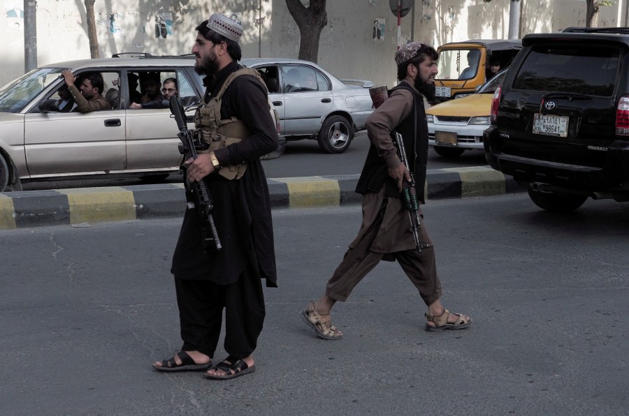 Taliban fighters guard a check-point on a main street in Kabul, Afghanistan August 29, 2021. REUTER/Stringer