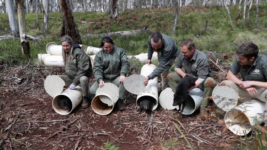 For now, the devils released this year and those expected to be released in coming years won’t go into the wild just yet. Instead they will receive supplementary feedings and be monitored by remote cameras, with some devils tagged with GPS trackers to learn more about how they adjust in their new environment, said Gabriel.