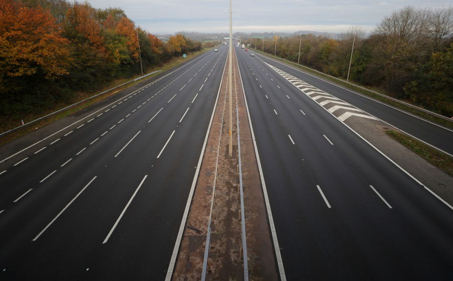 A view of the M5 motorway in what should be rush hour, near junction 8 at the start of a four week national lockdown for England, Thursday, Nov. 5, 2020. Britain joined large swathes of Europe in a coronavirus lockdown designed to save its health care system from being overwhelmed. Pubs, along with restaurants, hairdressers and shops selling non-essential items closed on Thursday until at least Dec. 2. (David Davies/PA via AP)