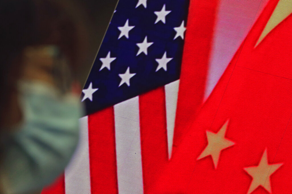 FILE – In this Feb. 22, 2021, file photo a woman wearing a face mask to help curb the spread of the coronavirus sits near a screen showing China and U.S. flags as she listens to a speech by Chinese Foreign Minister Wang Yi at the Lanting Forum on bringing China-U.S. relations back to the right track, at the Ministry of Foreign Affairs office in Beijing. The American military is warning that China likely is accelerating its timetable for capturing control of Taiwan, the island democracy that has been the chief source of tension between Washington and Beijing for decades and is widely seen as the most likely trigger for a potentially catastrophic U.S.-China war. (AP Photo/Andy Wong)