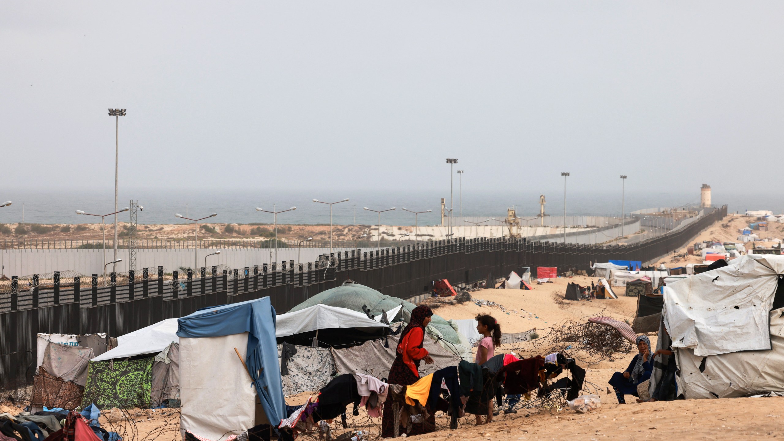Displaced Palestinians sit outside to escape the searing heat in their camp tents in Rafah in the southern Gaza Strip near the border with Egypt on April 26, 2024 amid the ongoing conflict between Israel and the Palestinian militant group Hamas. (Photo by MOHAMMED ABED / AFP) (Photo by MOHAMMED ABED/AFP via Getty Images)