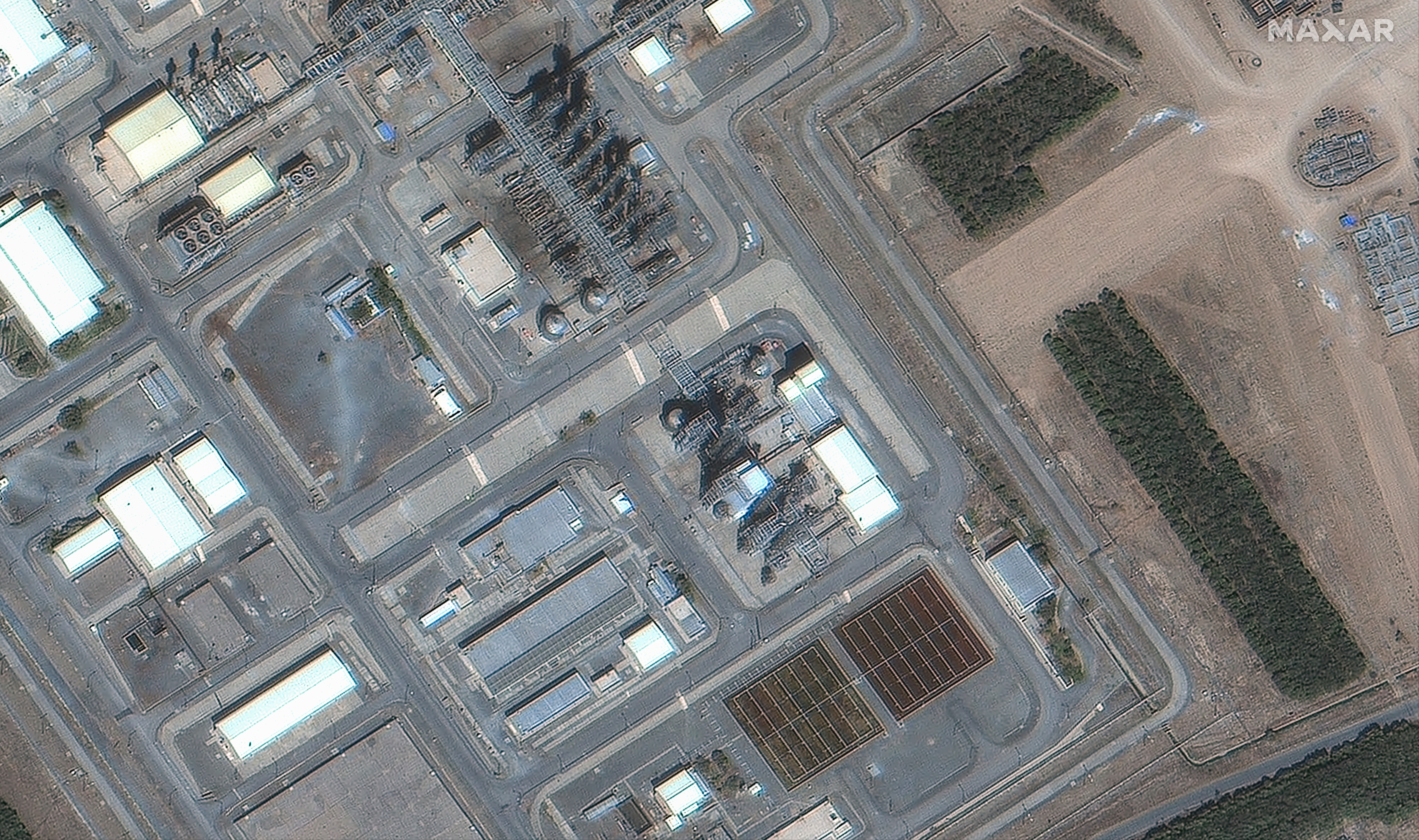 Damage was sustained on the facility’s main reactor, reactor dome, a set of distillation towers and other infrastructure, as shown in photos provided from Maxar Technologies.